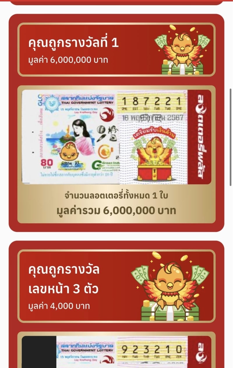 รางวัลที่ 1 รางวัลละ 6,000,000 บาท